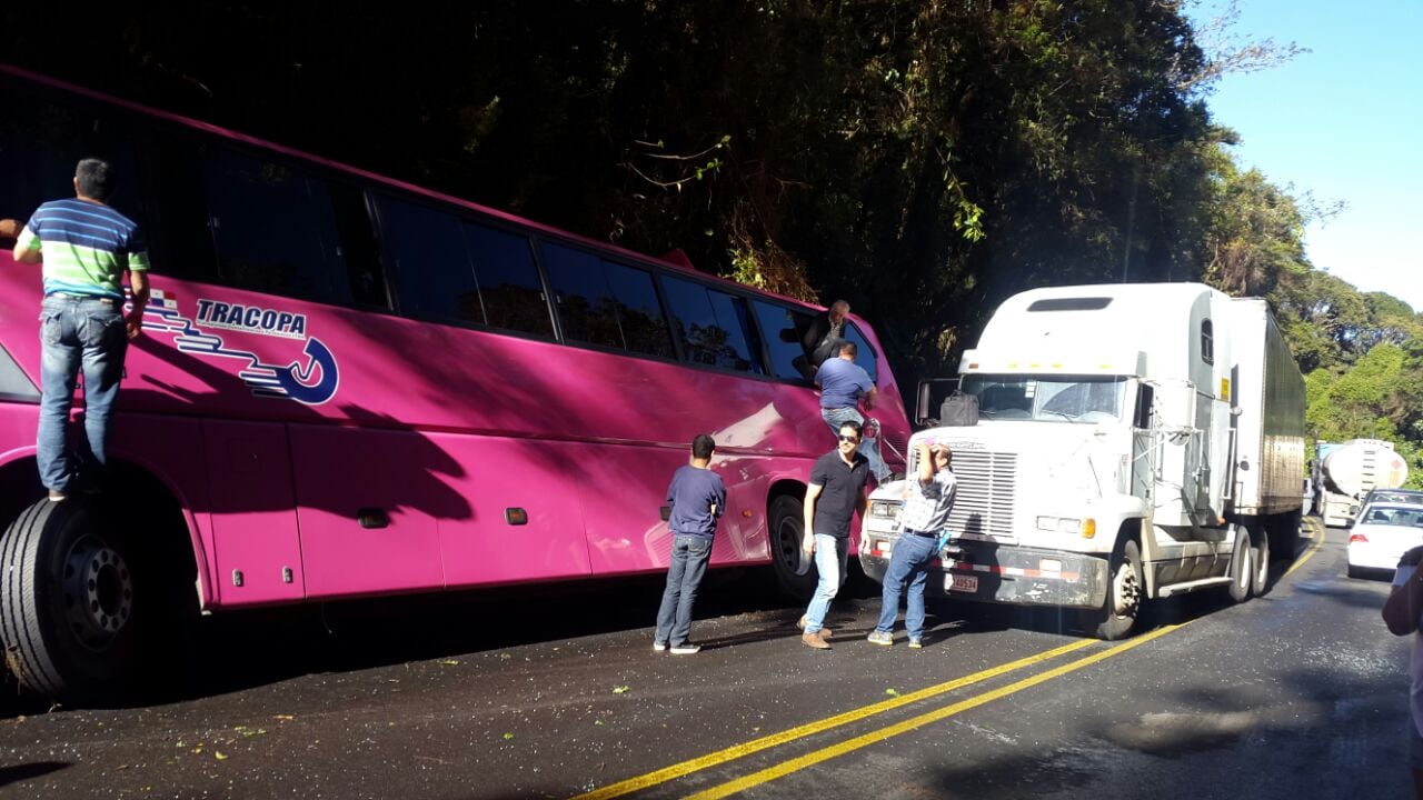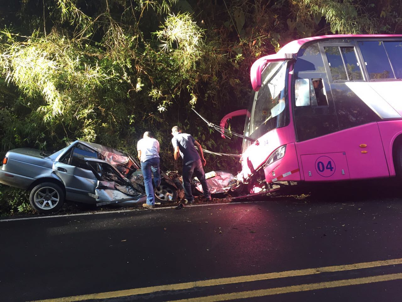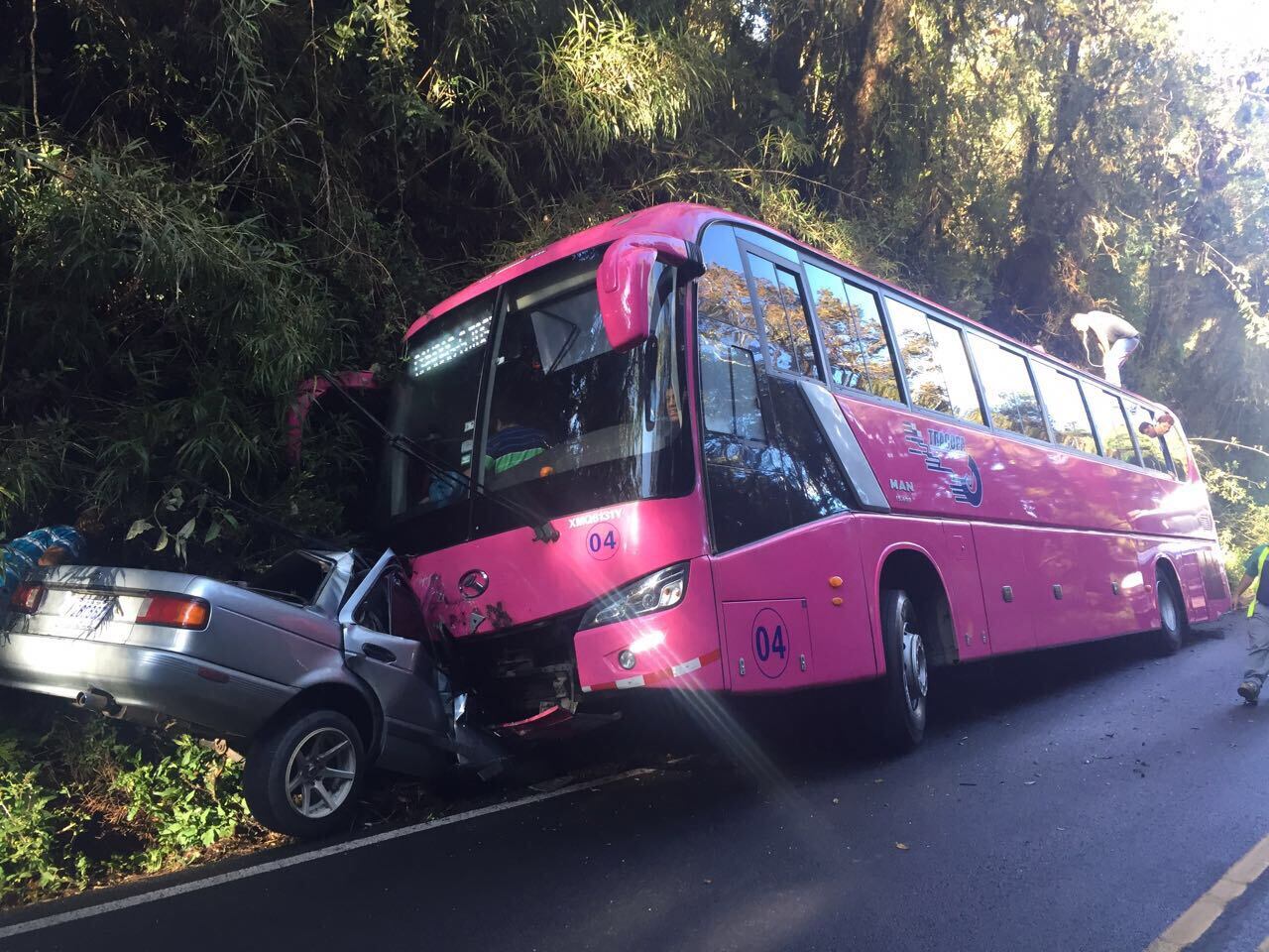 Un conductor estuvo dos horas prensado debajo de un bus después de que chocar violentamente con su carro en el Cerro de la Muerte.