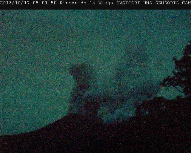 De acuerdo con información oficial del Observatorio Vulcanológico y Sismológico de Costa Rica (Ovsicori), el volcán estuvo lanzando ceniza de forma constante por al menos dos minutos.