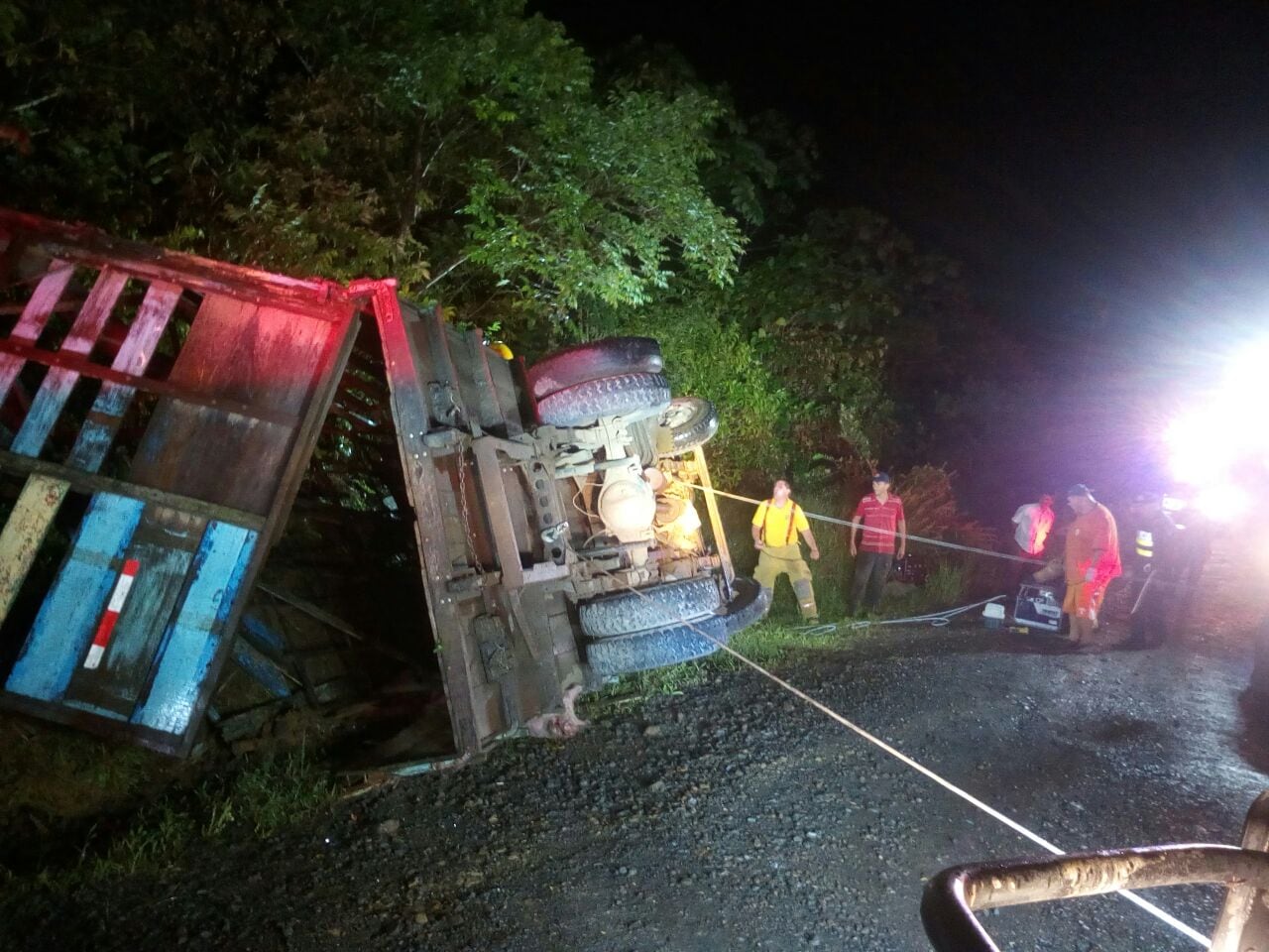 Con un destino fatal se encontraron tres miembros de una familia la noche de este viernes cuando volcó el camión en el que viajaba.