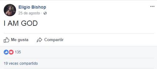 Por medio de su perfil en Facebook, en el que cuenta con más de 37.000 seguidores, Bishop se ha proclamado en múltiples ocasiones Dios. Dice que su unidad con la naturaleza y el conocimiento que ha adquirido lo han llevado a este nivel.
