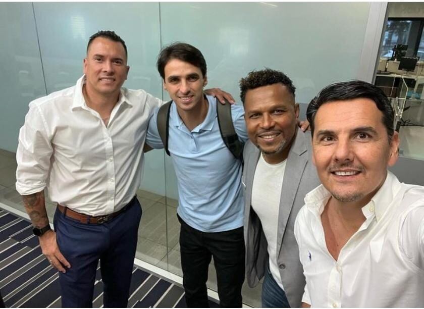 La Comadreja compartió una imagen del encuentro que tuvo con el exjugador hondureño Carlos Pavón, el panameño Blas Pérez y con el agente de marketing, Kris Arguedas.