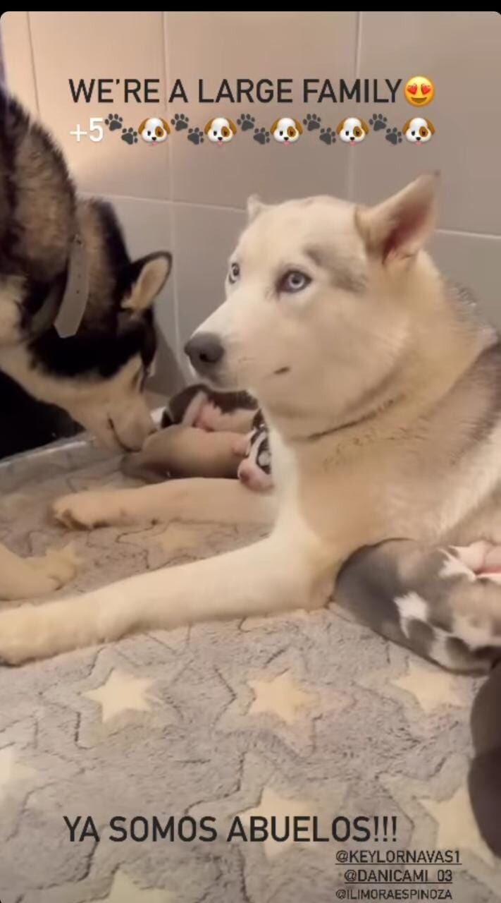 Navas y Salas tienen una pareja de huskys que tuvieron unos hermosos cachorritos este lunes y no dudaron en compartir su alegría con sus millones de seguidores.