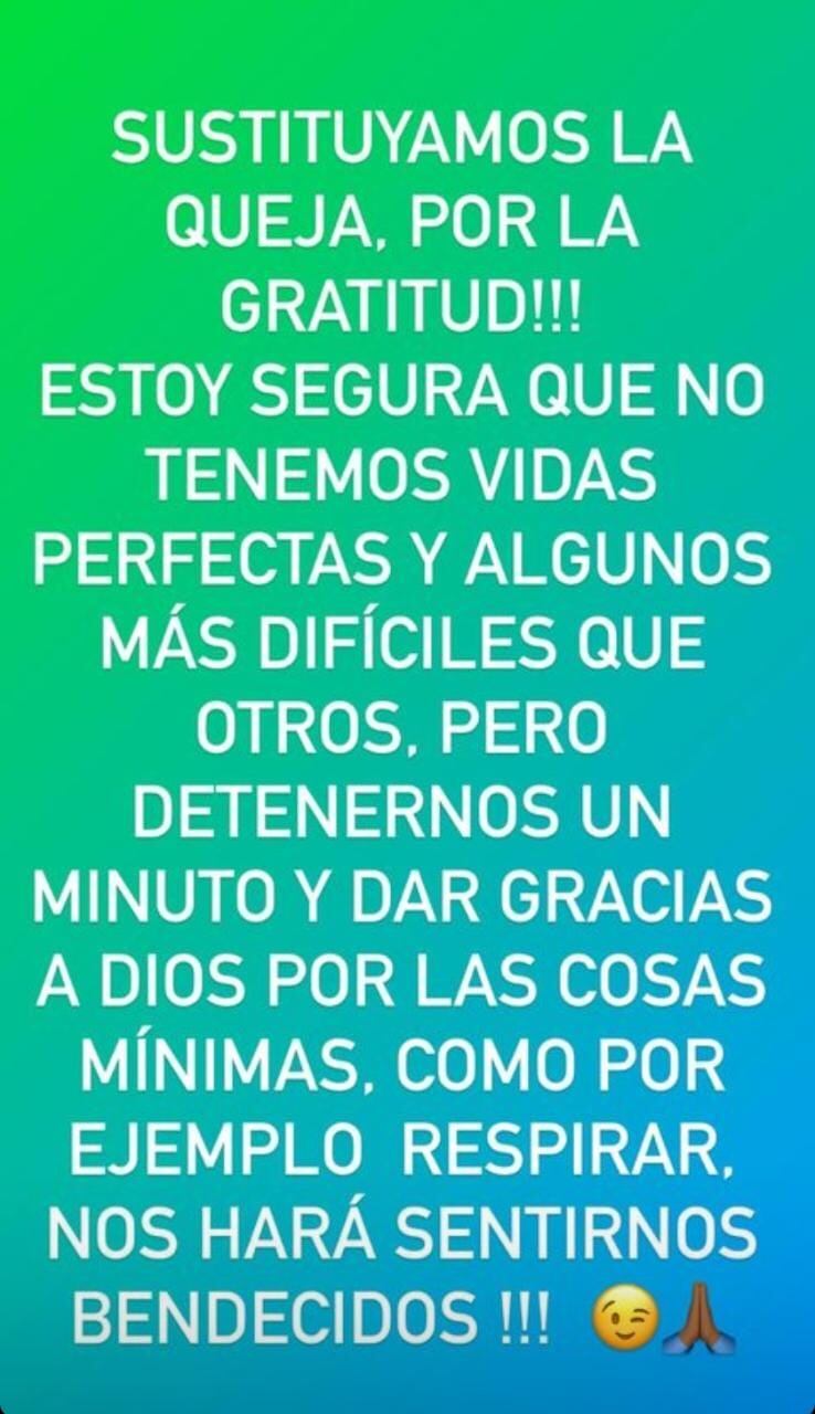 “De eso se trata de correr y no darnos por vencidos. Que nada nos detenga, las ganas de salir adelante, con Dios todo es posible, porque para Dios nada es imposible”, escribió en sus historias de Instagram.