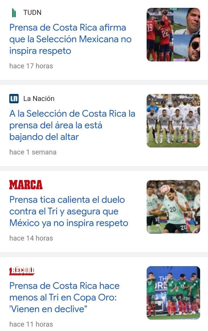 “Prensa de Costa Rica afirma que la Selección Mexicana no inspira respeto”, “Prensa de Costa Rica hace menos al Tri en Copa Oro: ‘Vienen en declive””, son algunos titulares en México.