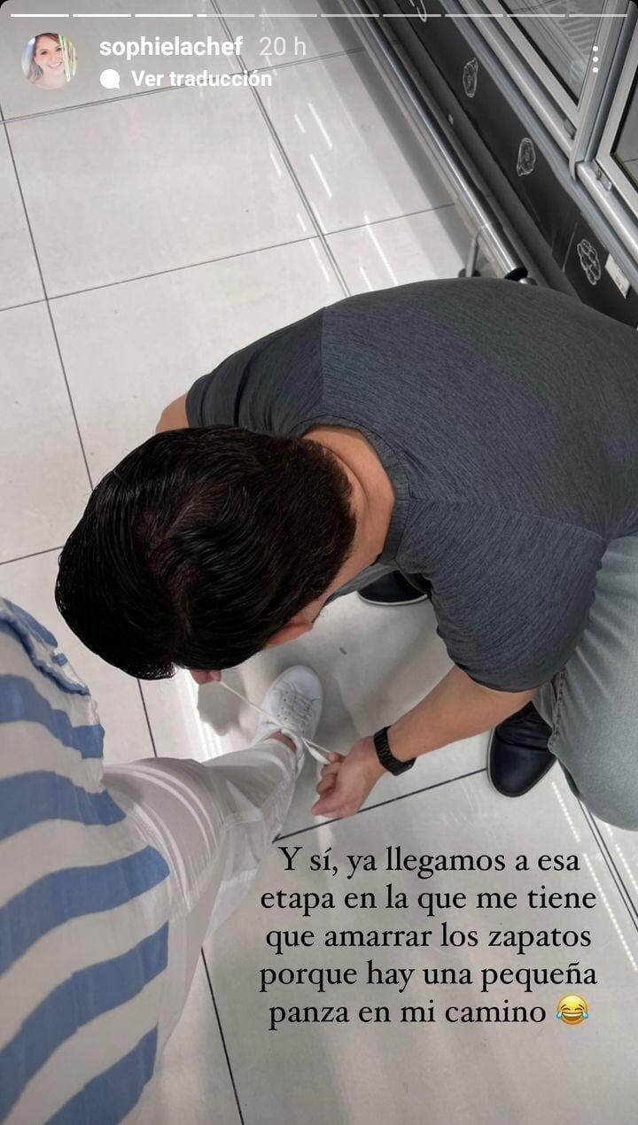 En su cuenta de Instagram compartió cómo su esposo la tiene que consentir más de la cuenta y ya hasta le amarra los zapatos.