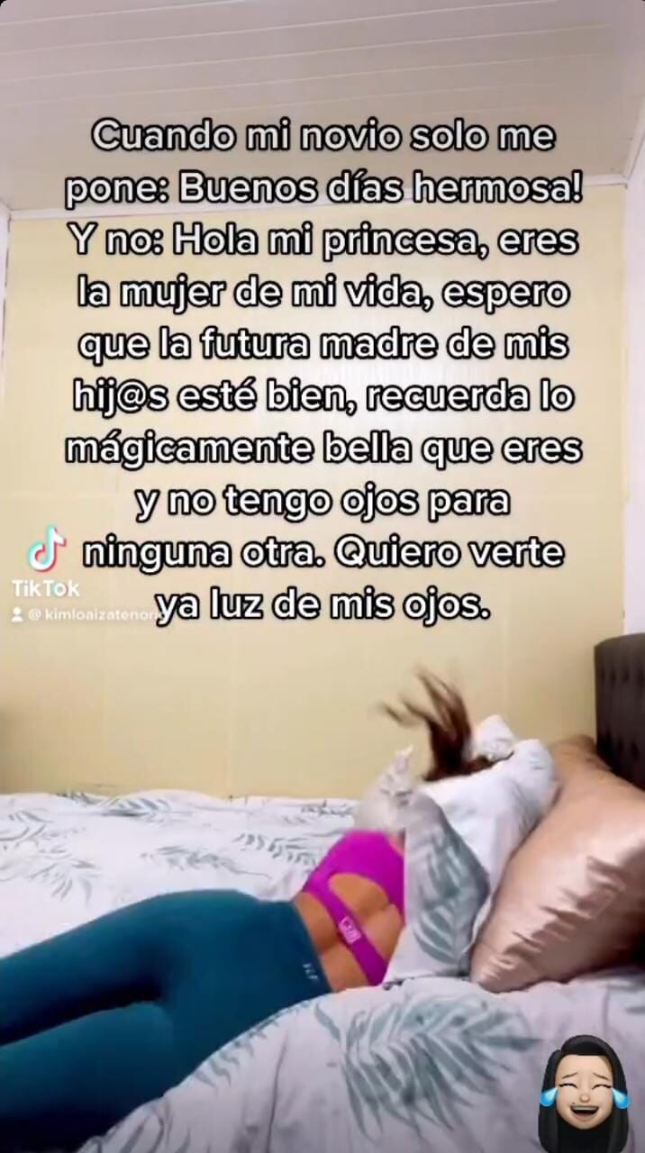 “Cuando mi novio solo me pone: ‘Buenos días, hermosa’, y no: ‘Hola, mi princesa, eres la mujer de mi vida, espero que la futura madre de mis hij@s esté bien, recuerda lo mágicamente bella que eres y que no tengo ojos para ninguna otra. Quiero verte ya luz de mis ojos’”, escribió