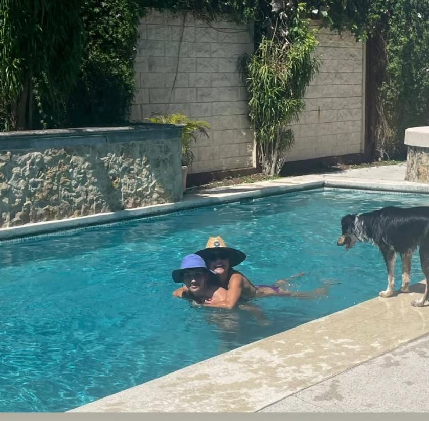 Dobles públicó la imagen en la que sale abrazando a su hijo en una piscina, luciendo muy feliz y muy cómoda disfrutando su día libre.