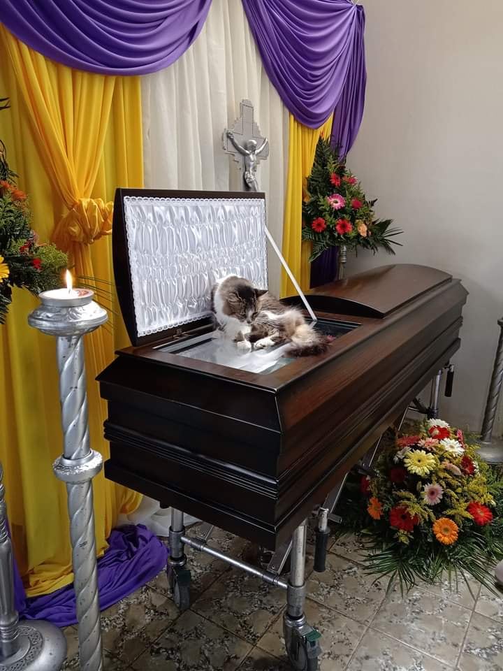 En la vela de don Hernán, Nucita no se quiso separar de su amo, estuvo toda la noche en una silla cerca del cuerpo y en la madrugada se acostó encima del ataúd, emocionando a la familia, que lo compartió en redes sociales.