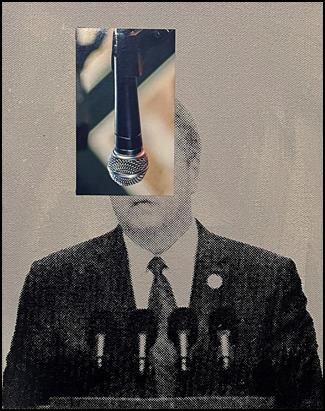 El artista explora diversos conceptos relacionados con el capitalismo, como los medios de comunicación, la economía, el trabajo, la libertad y el poder.