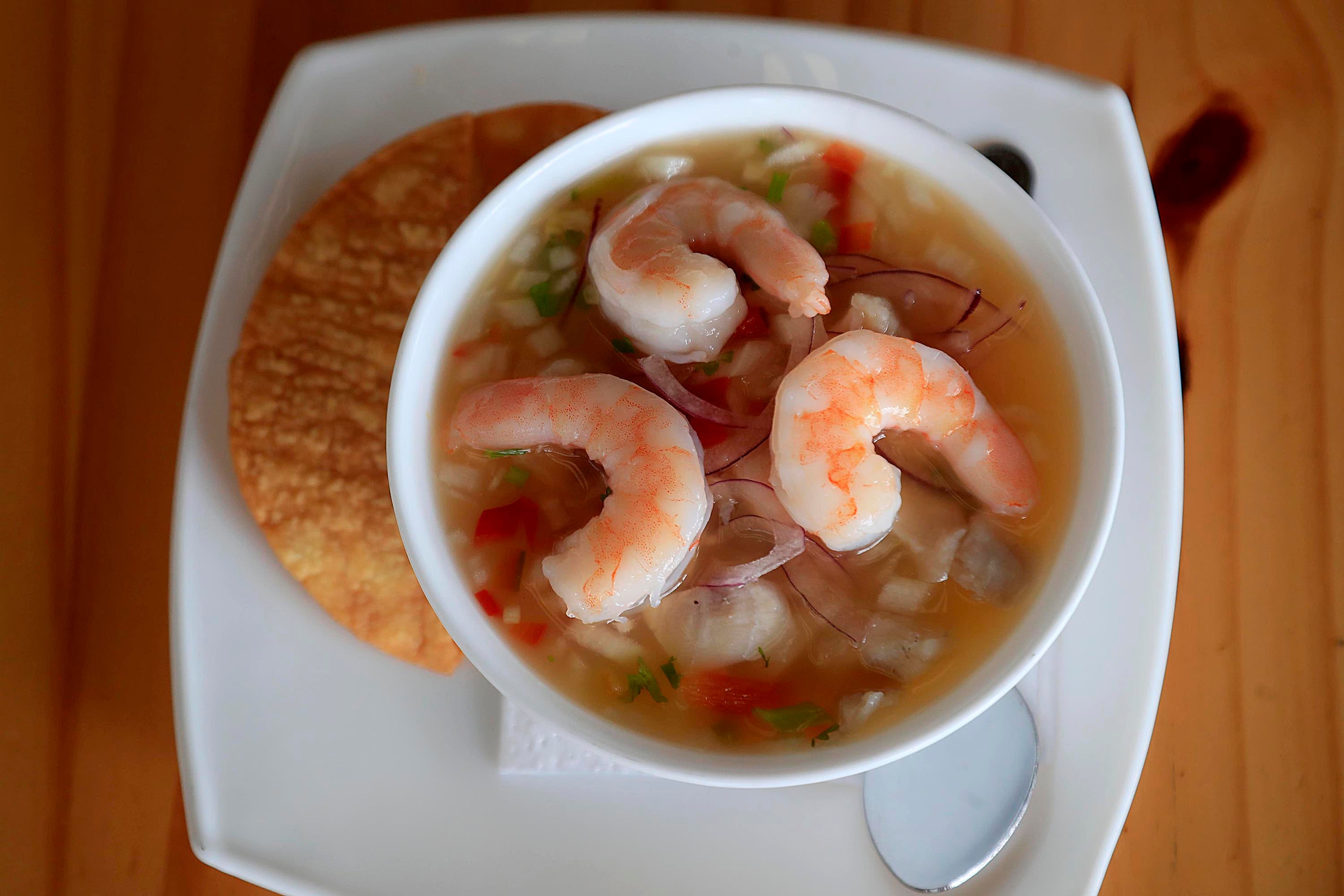 A la gente le gusta mucho la sopa en crema de mariscos, el ceviche y el pescado entero, es muy grande, relleno de camarones.