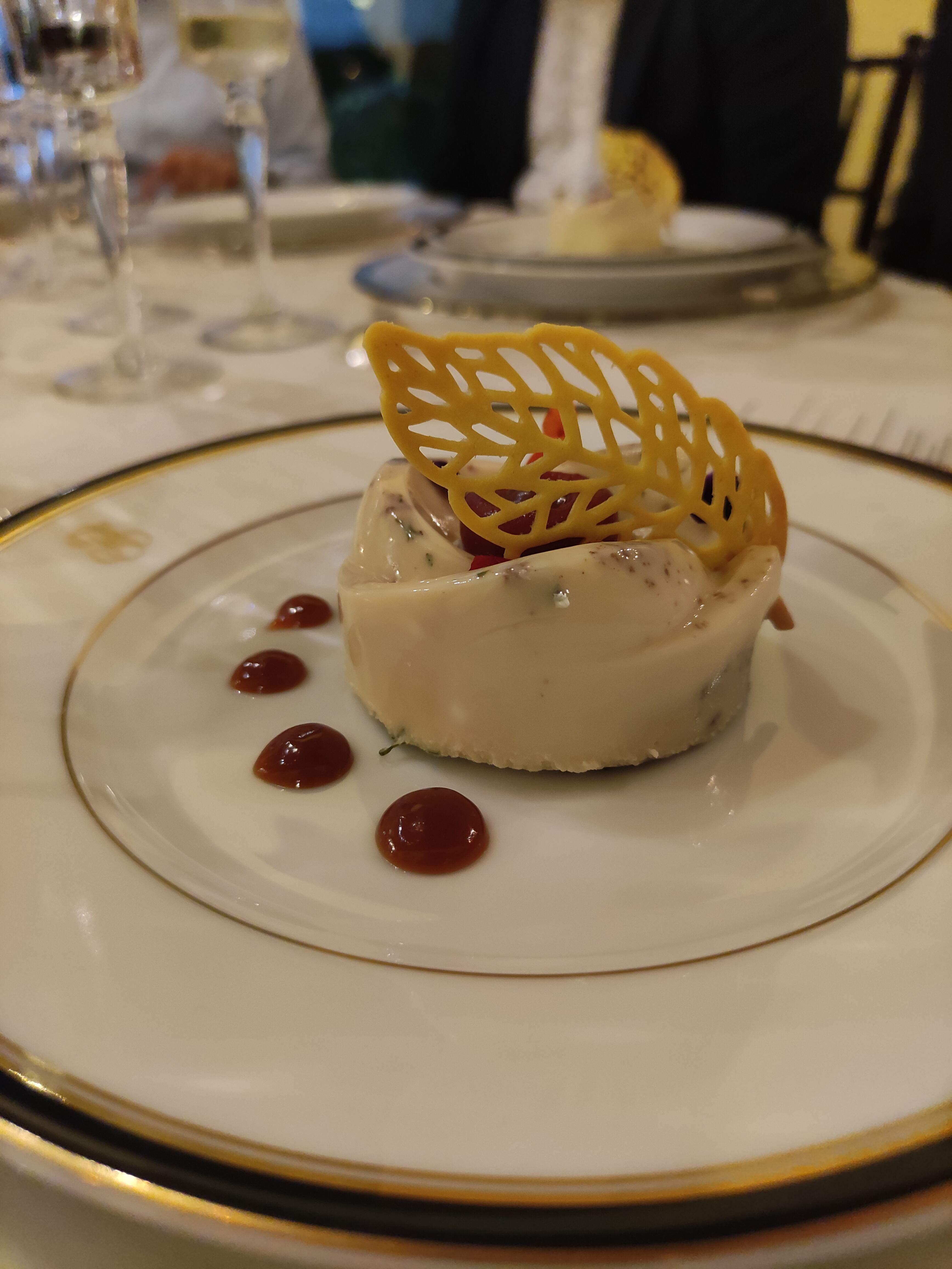 Luego, en la cena Vuelta a los orígenes del chocolate, llegó el momento de una pausa para limpiar el paladar y prepararse para el postre con una nieve de coco y ganache de chocolate y menta. Fue un suave, refrescante y encantador sorbet, que dejó una impresión memorable en el gusto.