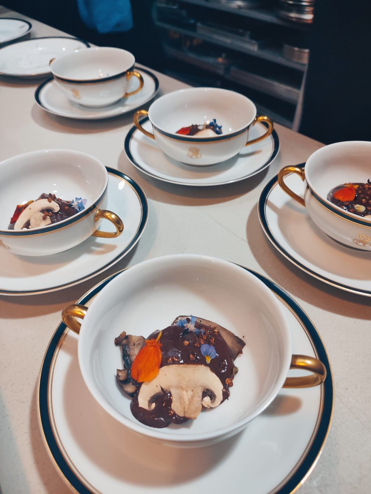 Los sentidos se despertaron con el Amuse-bouche, esa exclusiva preparación pensada como un entretenimiento para la boca e impulsada por la nouvelle cuisine; en este caso fue elaborado con setas y chocolate. Los hongos iban acompañados “de una nube de chocolate tibio y crujiente de sarracín y cacao”, explicó el menú. De esta manera, el chef francés estimuló el apetito con un sabor intenso e inusual.
