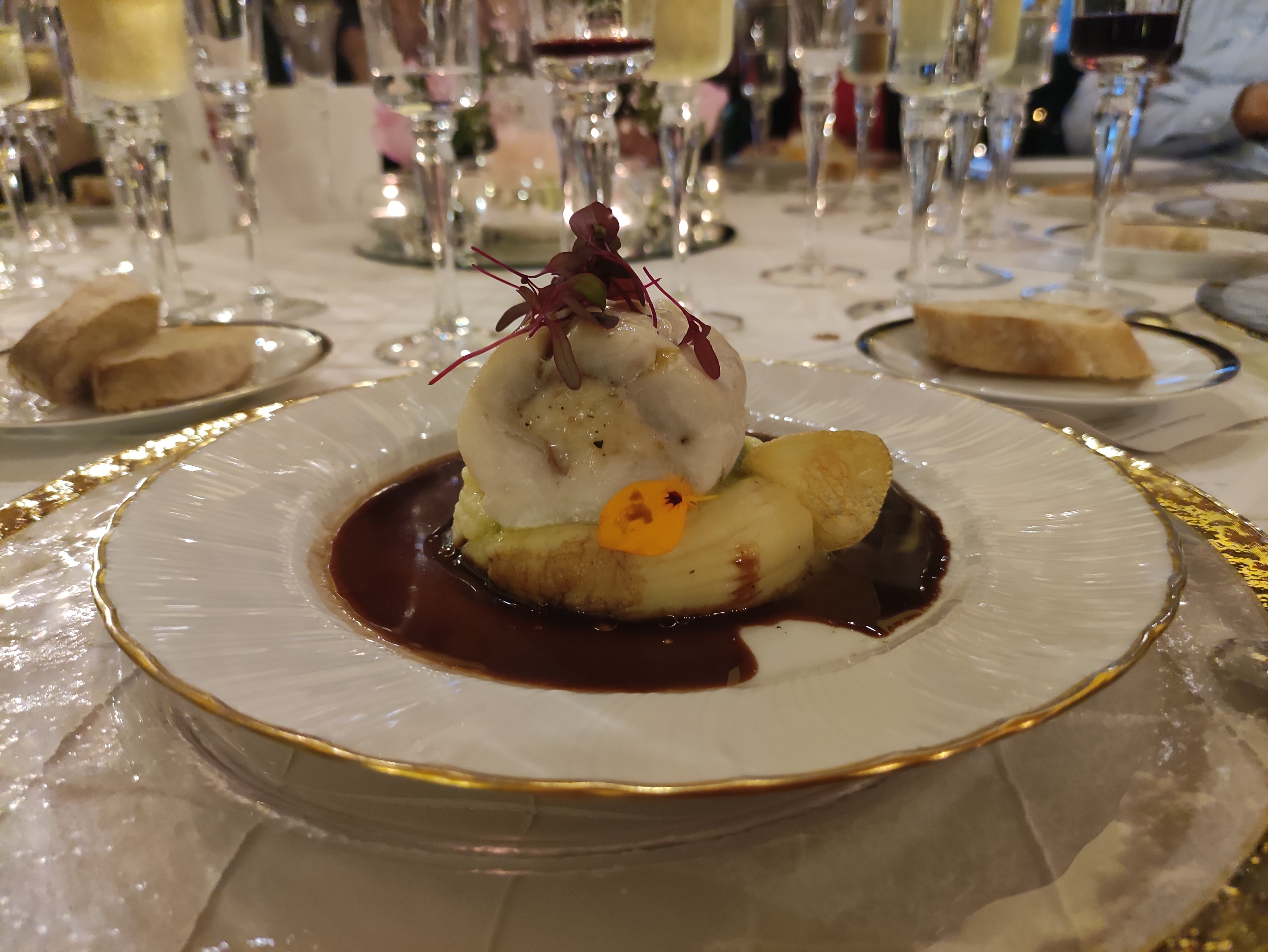 Cerrando los ojos, sobre todo al inicio para poder concentrarse en los sabores, los comensales se regodearon en cada bocado de aquella versión de la salsa típica borgoñona con la corvina, el relleno de camarones y los purés cremosos. No faltó por allí un “mmm” discreto, quizá porque era una cena de gala, o un “qué delicia”.