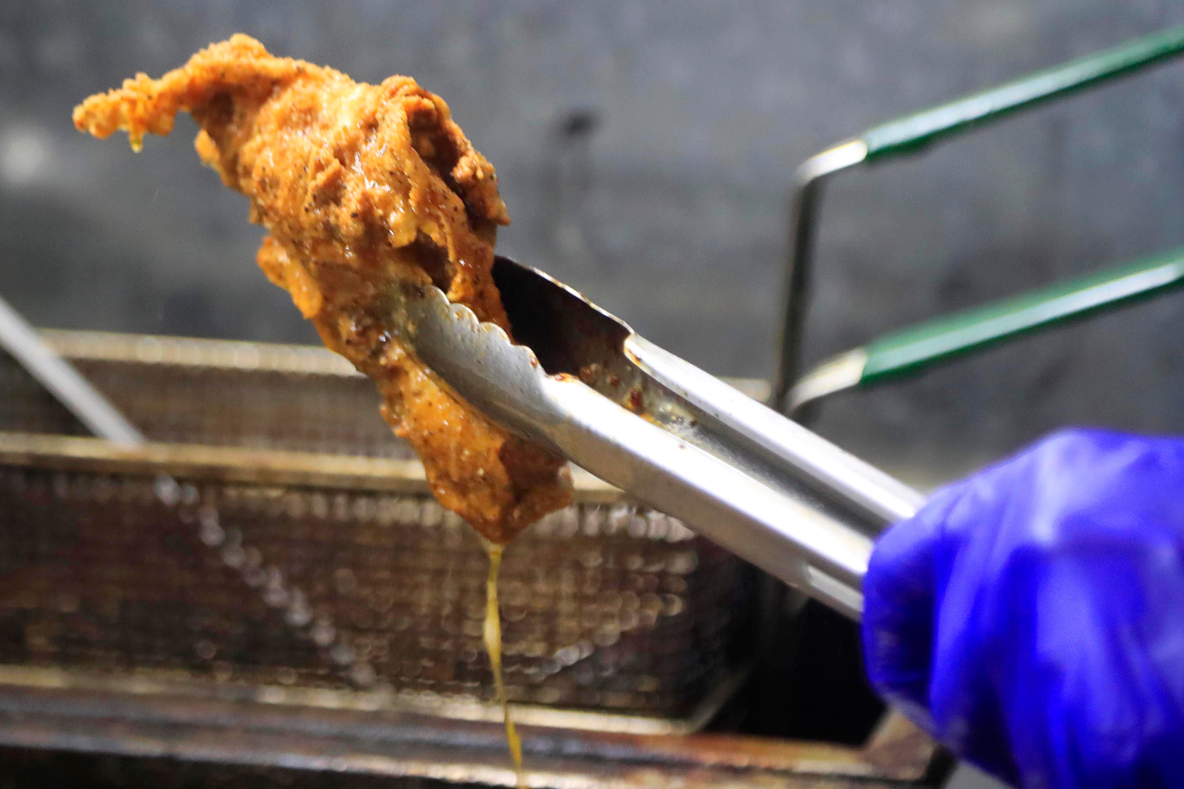 - Texas chicken: filete de pollo empanizado, tocineta, aros de cebolla.